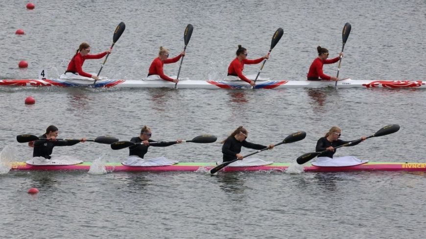 На дальнем плане команда юниорской сборной России (вторая слева - Анастасия Кравченко). Фото: Федерация каноэ России