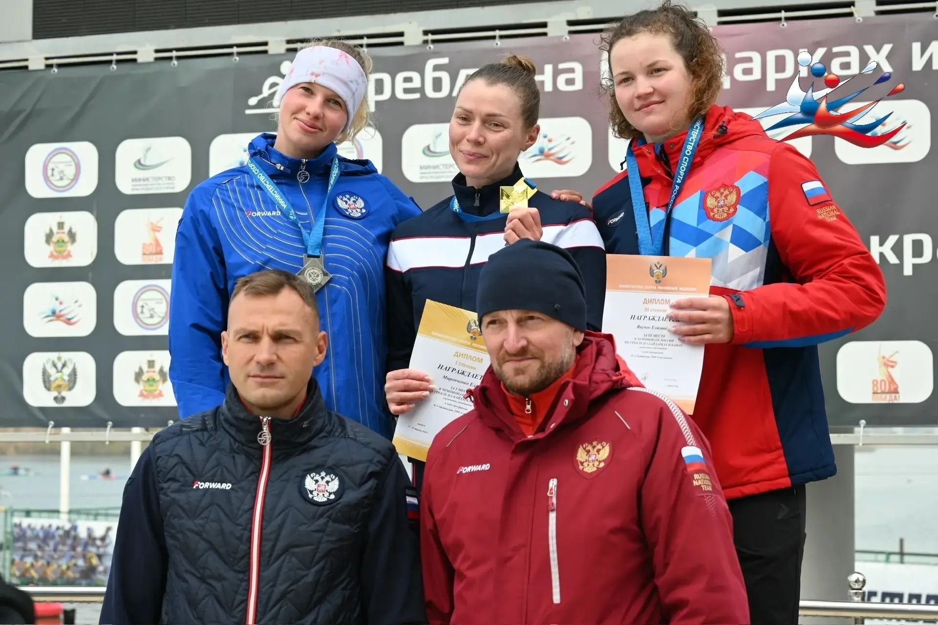 В первый день были разыграны медали чемпионата России на дистанции 2000 метров, и сразу же нас порадовала воспитанница СШОР имени Костенко Анастасия Кравченко. Настя завоевала серебряную награду среди женщин-байдарочниц!
